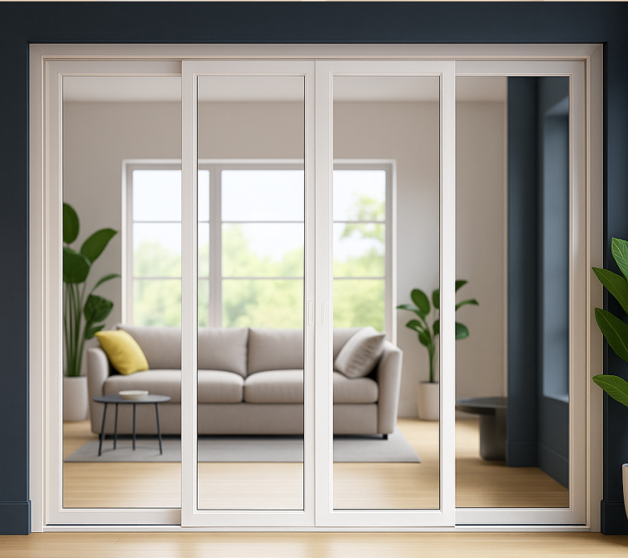 Sliding door 2 track 4 shutter double side fix ed center sliding